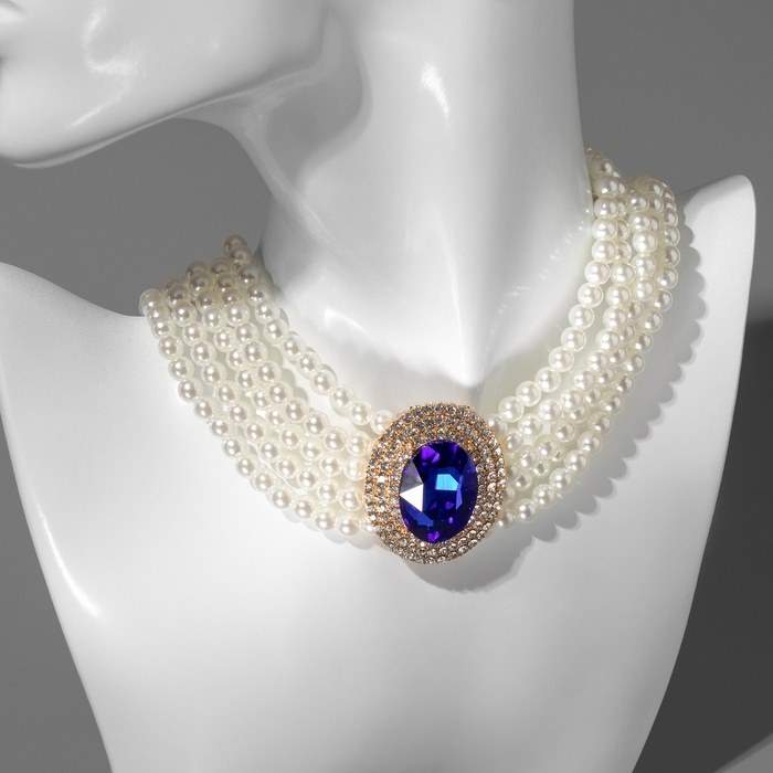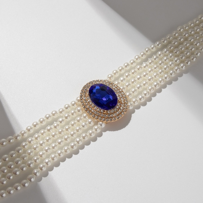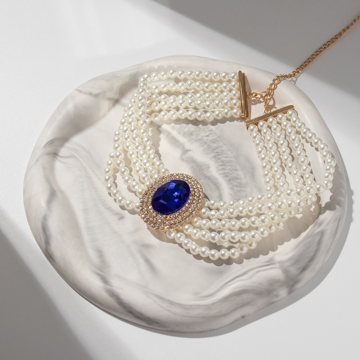 Чокер-колье «Роскошь» жемчужое, синий в золоте, 30,5 см