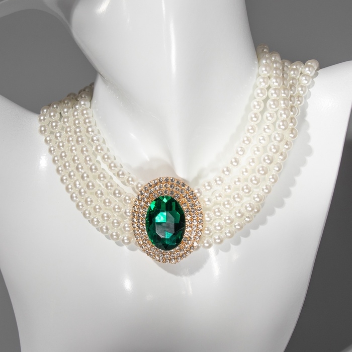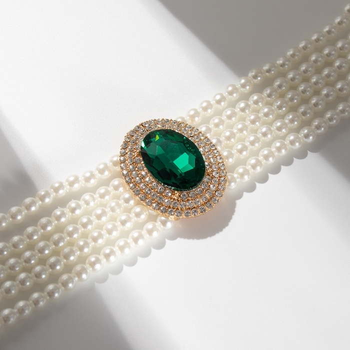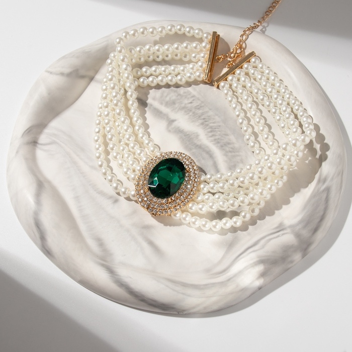 Чокер-колье «Роскошь» жемчужое, зелёный в золоте, 30,5 см