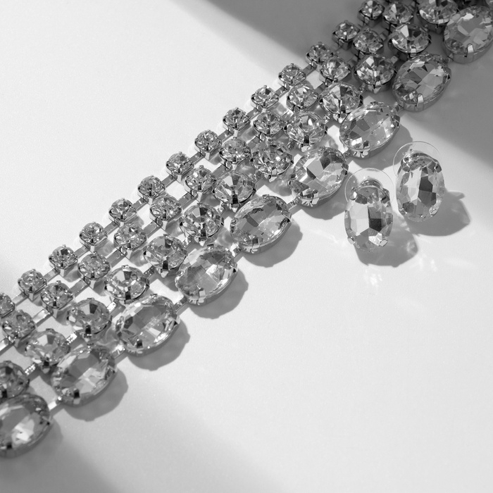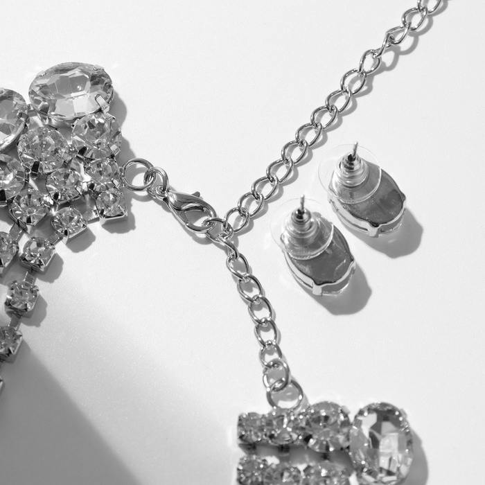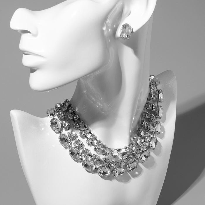 Набор 2 предмета; серьги, колье «Вечерний» 4 ряда, цвет белый в серебре