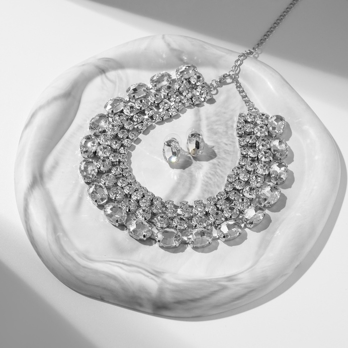 Набор 2 предмета: серьги, чокер «Лёд» три ряда, цвет белый в серебре, 30 см