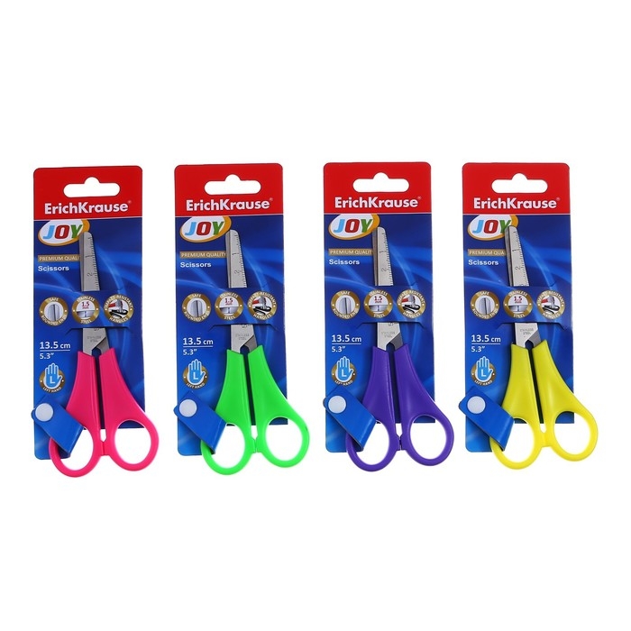 Ножницы детские для левшей 13,5 см, ErichKrause Joy Left Hand, с закруглёнными концами лезвий и линейкой, МИКС