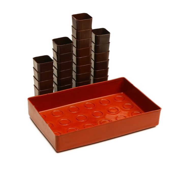 Размер тары подходит для свободного развития корневой системы большинства растений. Пластиковые стаканчики из полипропилена обладают повышенной плотностью и влагостойкостью. Рассадник не токсичен, легко моется, сохраняет форму на солнце, не гниёт, не ломается при падении. Поддон придаёт стаканчикам устойчивость, экономит место, облегчает транспортировку.