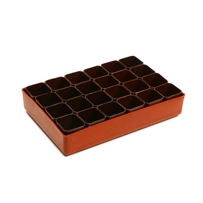 При выращивании в общем ящике корни часто переплетаются и получают недостаточно питания и кислорода. Рассадник на 24 стаканчика создаёт правильные условия.