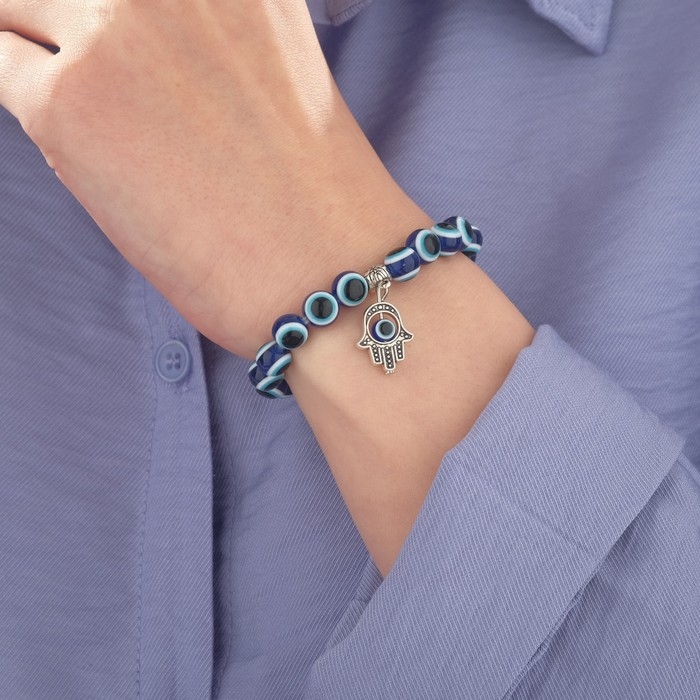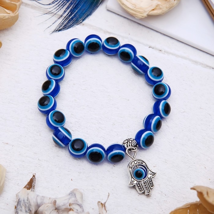 Браслет-оберег «Глазик» рука, цвет синий, d=7,5 см