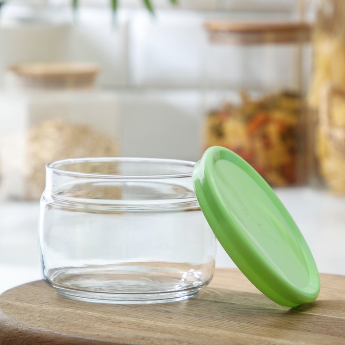 Банка для сыпучих продуктов стеклянная Cesni, 420 мл, зелёная пластиковая крышка