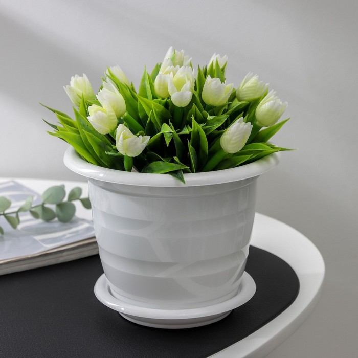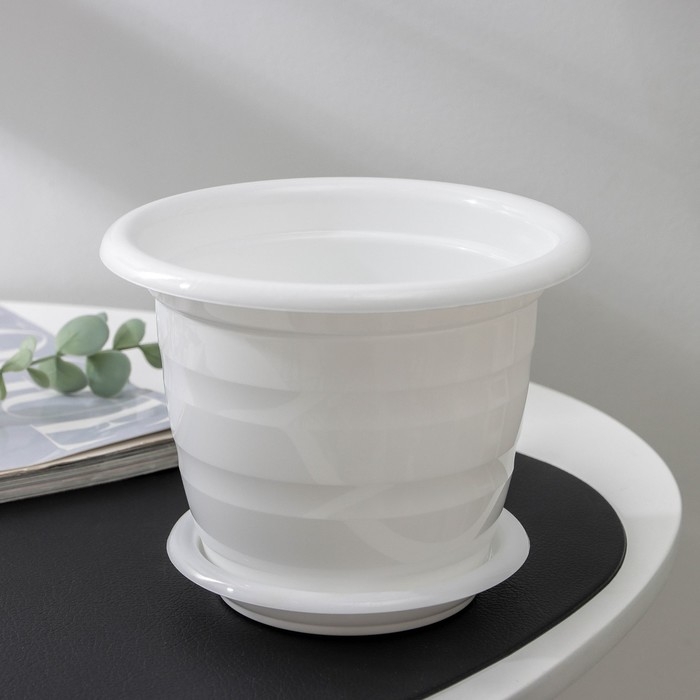 Горшок для цветов с поддоном «Виола», 1 л, пластиковый, белый