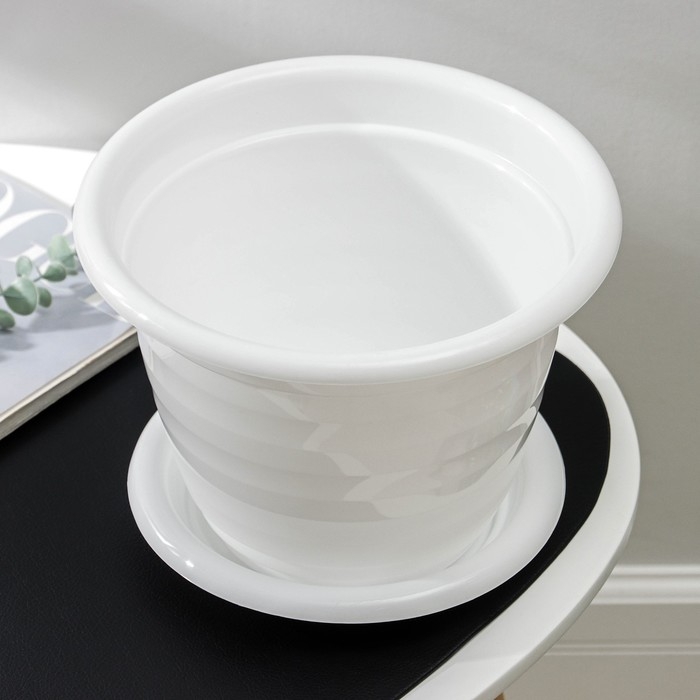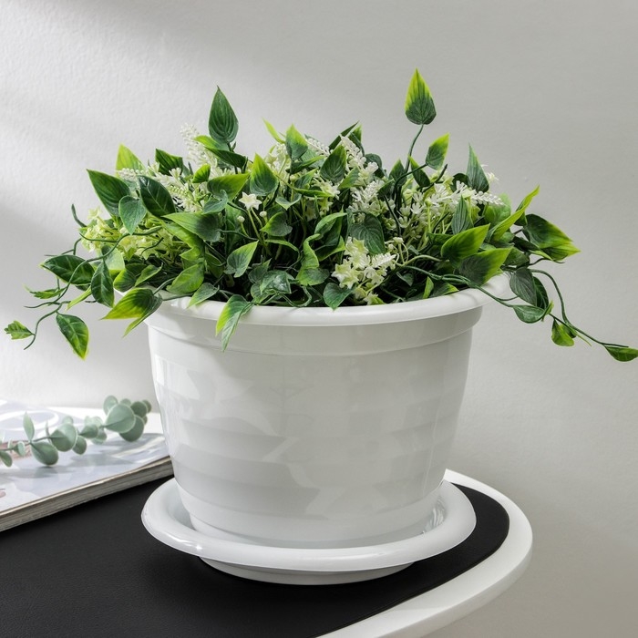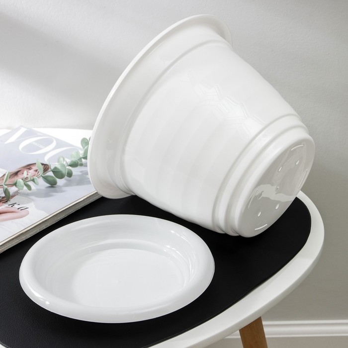 Горшок для цветов с поддоном «Виола», 5 л, пластиковый, белый