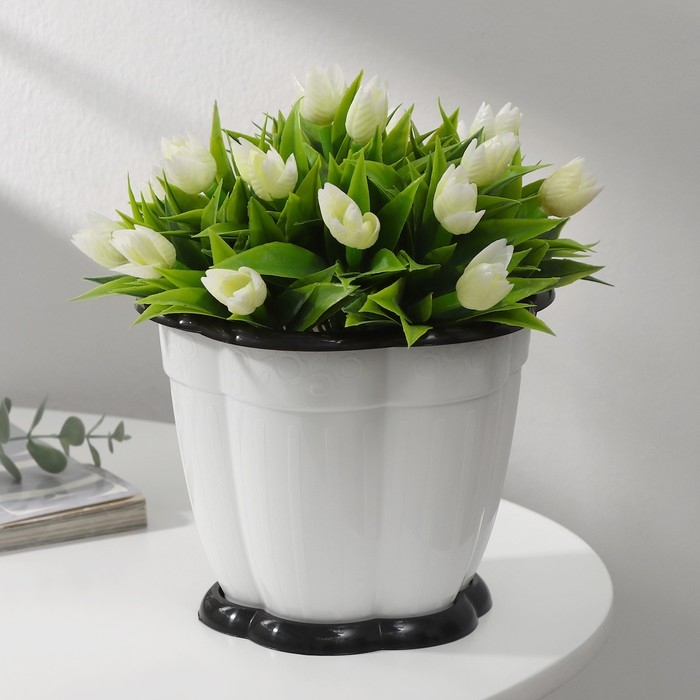 Горшок для цветов с поддоном «Восторг», 1.5 л, пластиковый, белый