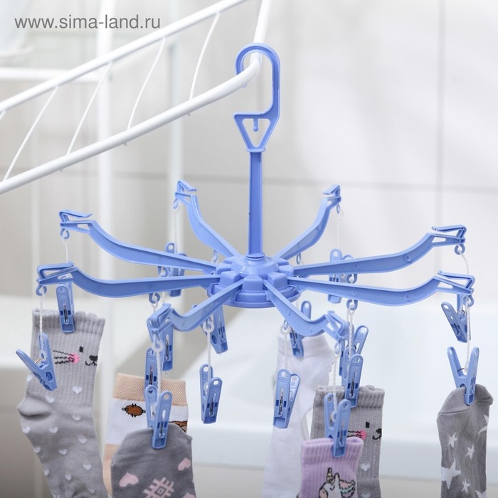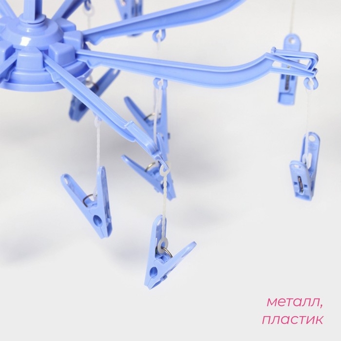 Сушилка для белья подвесная Доляна, 41×41 см, 16 прищепок, цвет синий