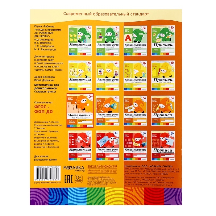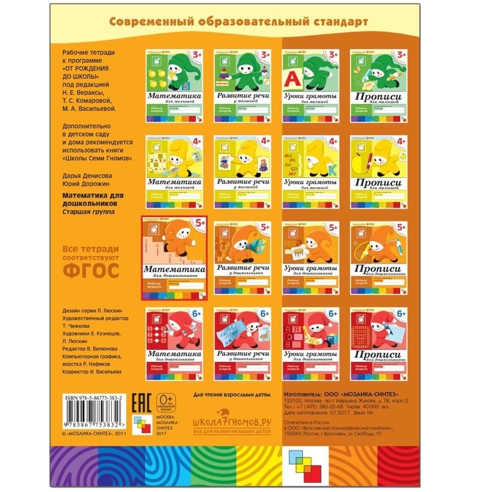Рабочая тетрадь «Математика для дошкольников», старшая группа, Денисова Д., Дорожин Ю., 16 стр.