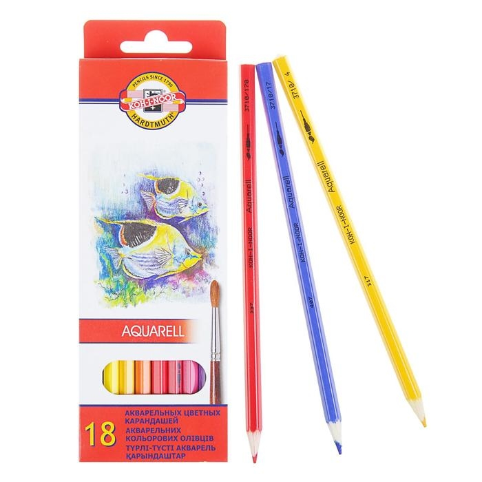 Карандаши акварельные 18 цветов Koh-I-Noor 3717 "Рыбки", картонная упаковка, европодвес
