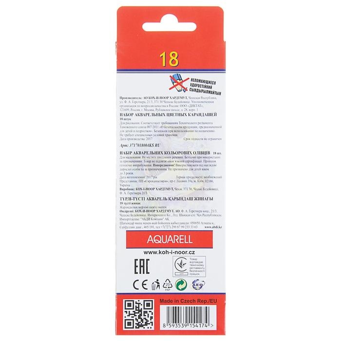 Карандаши акварельные набор 18 цветов, Koh-I-Noor Mondeluz 3717