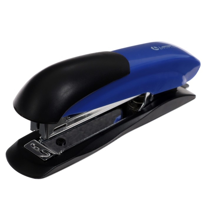 Степлер Lamark ULRICH мощностью сшивания до 12 листов имеет металлический механизм и пластиковый корпус синего цвета.