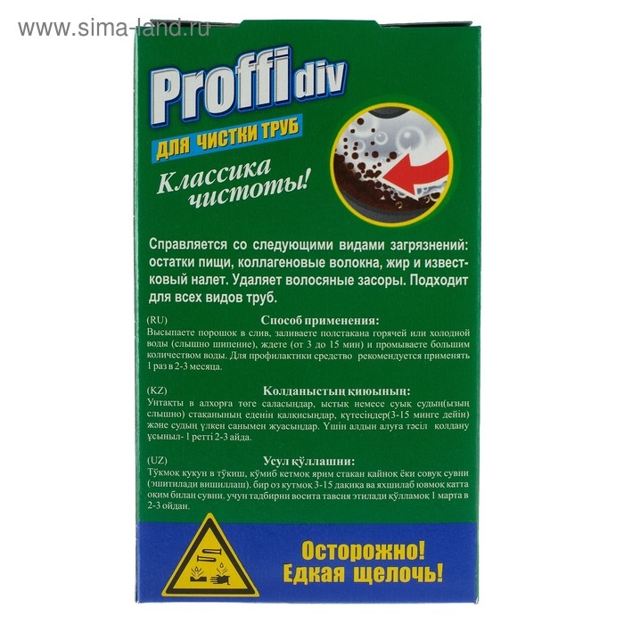 Способ применения: высыпьте порошок в слив, заливайте полстакана горячей воды или холодной воды (слышно шипение), ждете 3-15 мин и промываете большим количеством воды. Для профилактики рекомендуется применять 1 раз 2-3 месяца.