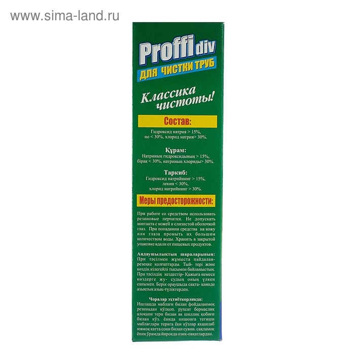 Меры предосторожности: при работе со средством использовать резиновые перчатки. Не допускать контакта с кожей и слизистой оболочкой глаз. При попадании средства на кожу или глаза промыть их большим количеством воды. Хранить в закрытой упаковке вдали от пищевых продуктов.