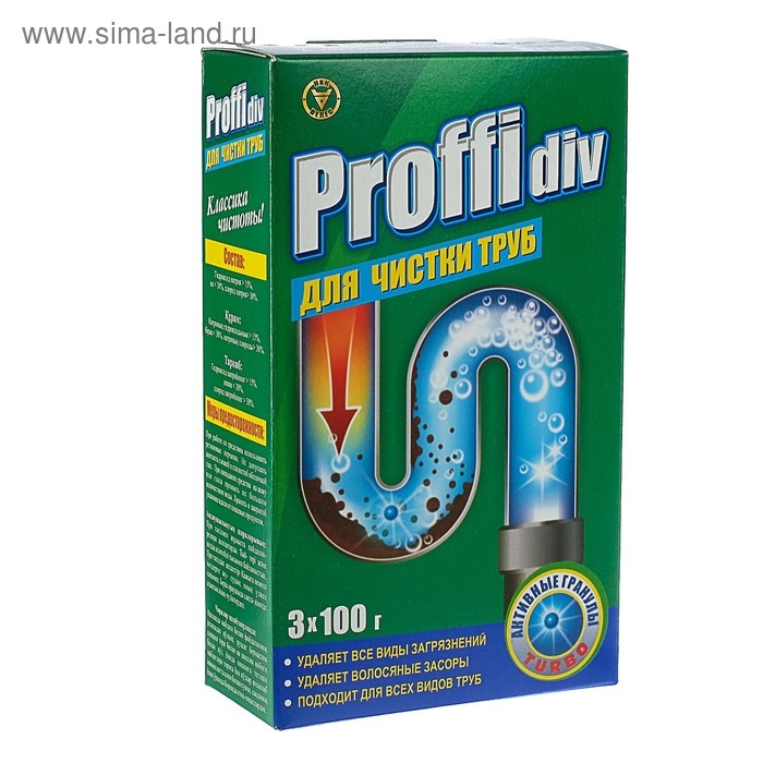 Средство для чистки канализационных труб Proffidiv turbo, гранулы, 3 × 100 г