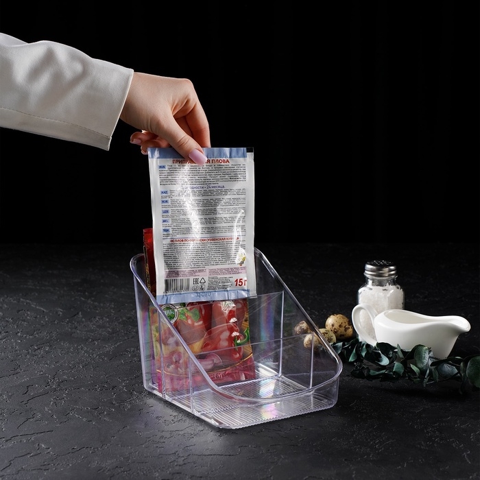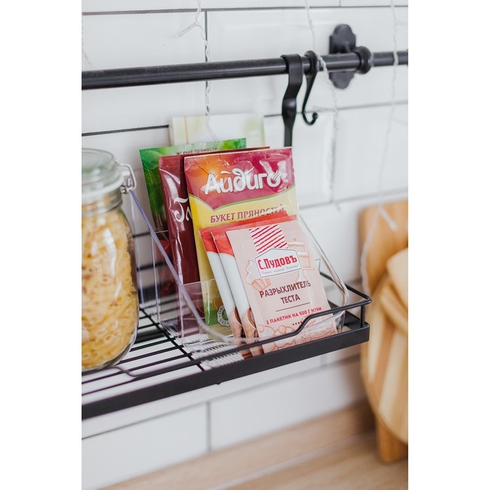 Каждая хорошая хозяйка имеет в запасе пару–тройку хитростей, которые делают ее блюда неповторимыми. В большинстве своем такой хитростью является оригинальное сочетание приправ. Хотите обзавестись своими кулинарными секретами и поражать всех удивительным вкусом блюд? Предлагаем вашему вниманию удобный, прочный органайзер для специй. Благодаря специальной форме вы можете устойчиво разместить все пакетики с приправами, независимо от их размеров. Конструкция позволяет разглядеть все содержимое органайзера разом, что значительно облегчит процесс поиска нужной специи.