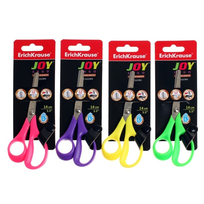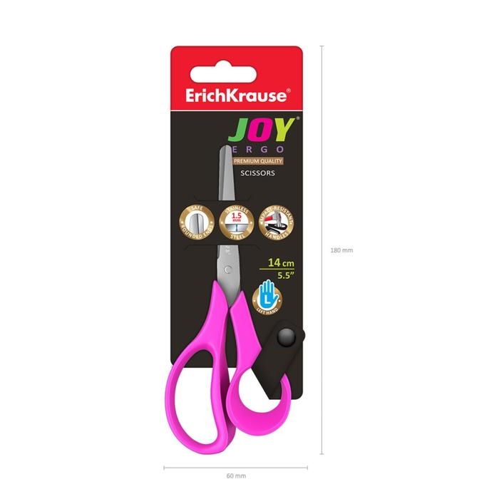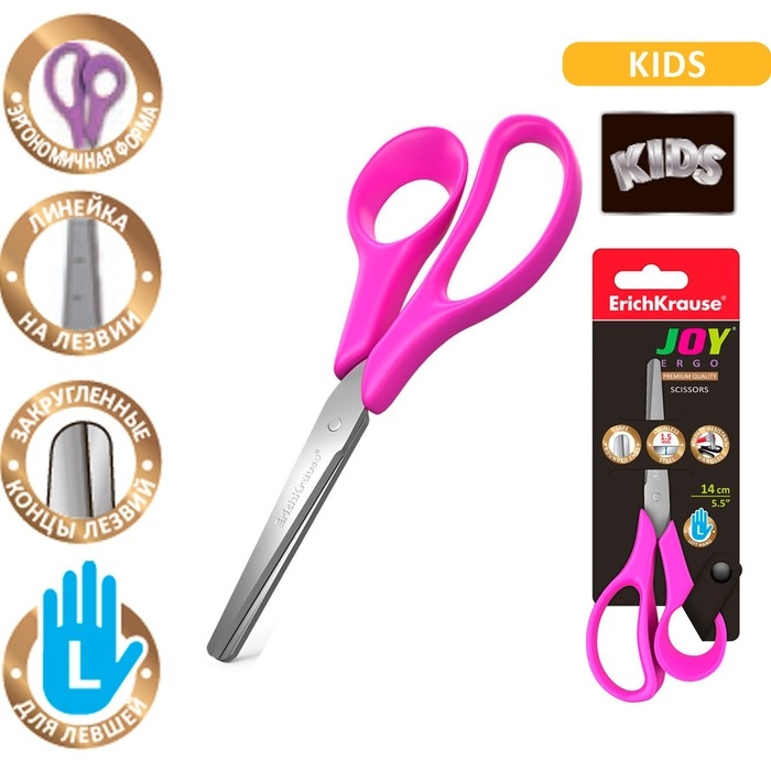Ножницы детские для левшей 14 см, ErichKrause Joy Ergo, с закруглёнными концами лезвий и линейкой, МИКС
