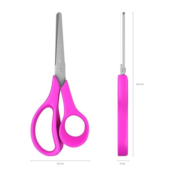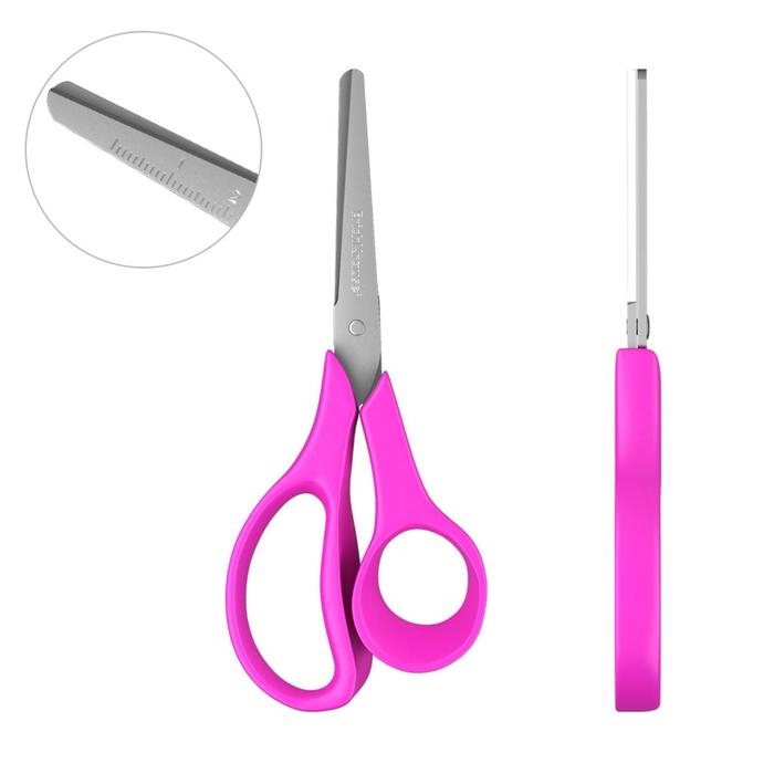 Ножницы с лезвиями из высококачественной нержавеющей стали с безопасными закругленными концами лезвий и линейкой, обеспечивающей точность резки. Не ржавеют. Ручки эргономичной формы из ударопрочного пластика. Модель предусмотрена для левшей. Товар поставляется в нескольких вариантах цвета/дизайна без возможности выбора.