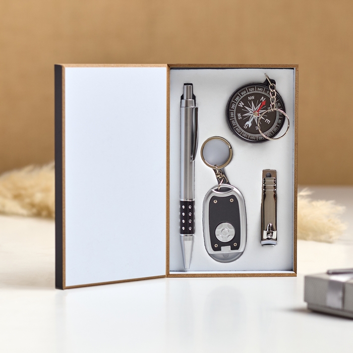 Набор подарочный 4в1 (ручка, кусачки, компас, фонарик)