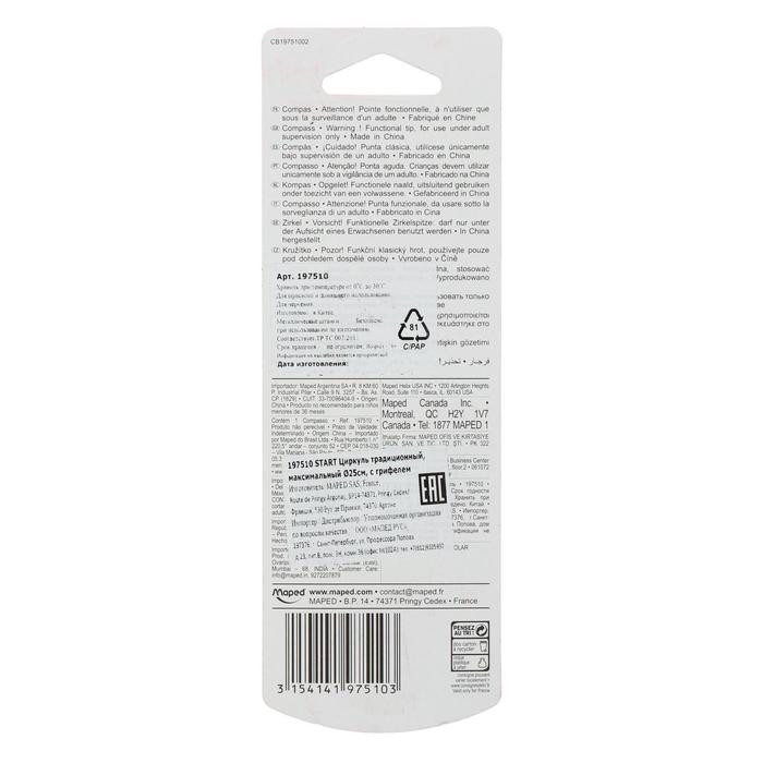 Циркуль металлический, Maped Start, 130 мм, с грифелем, в блистере