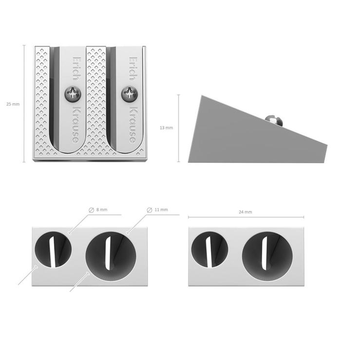 Точилка металлическая 2 отверстия Erich Krause FERRO PLUS, алюминий, отверстия диаметром 8 мм и 11 мм
