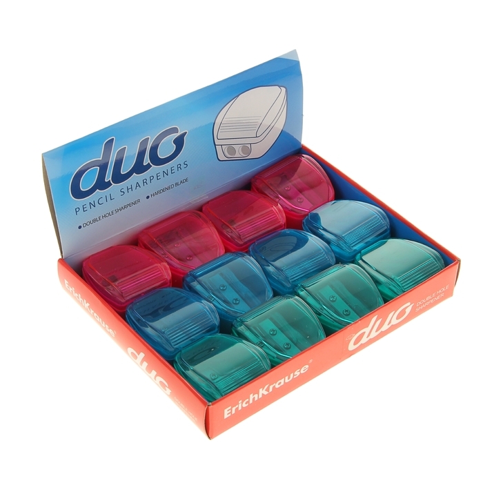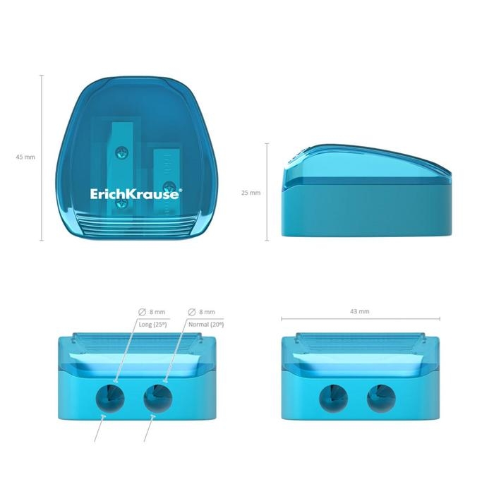 Точилка 2 отверстия ErichKrause Duo, с контейнером, отверстия диаметром 8 мм, микс
