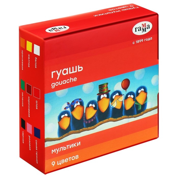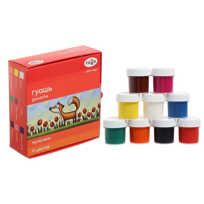 Гуашь 9 цветов "Гамма" "Мультики", 20 мл поможет вашему ребёнку создавать красивые яркие картинки, выдумывать невероятные сюжеты и воплощать их в реальность, развивая цветовое восприятие, зрительную память, воображение, мелкую моторику пальцев, ассоциативное, аналитическое и творческое мышление.