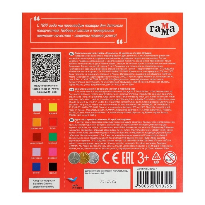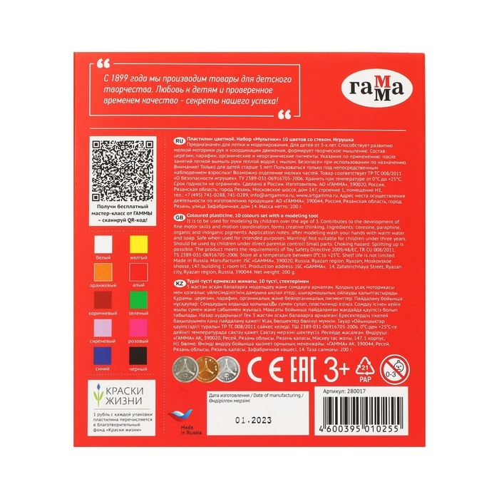 Пластилин серии "Мультики" разработан специально для детей от 6 до 9 лет с учетом рекомендаций педагогов.