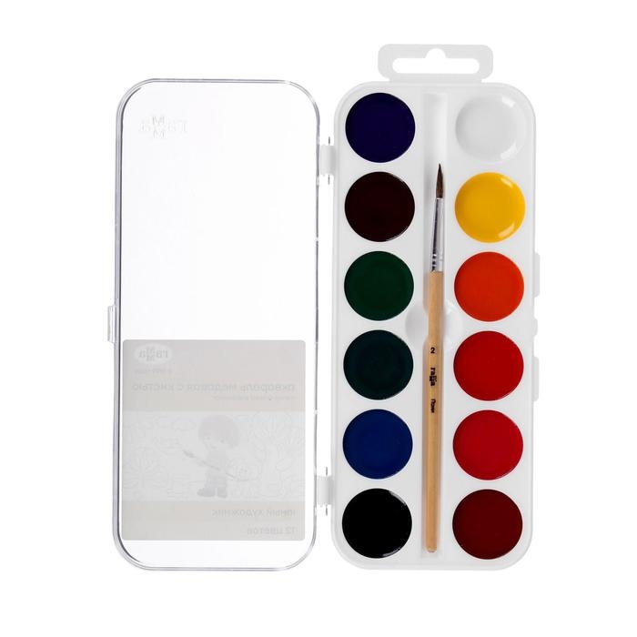 Краски акварельные, в кюветах, с кистью, 12 цветов