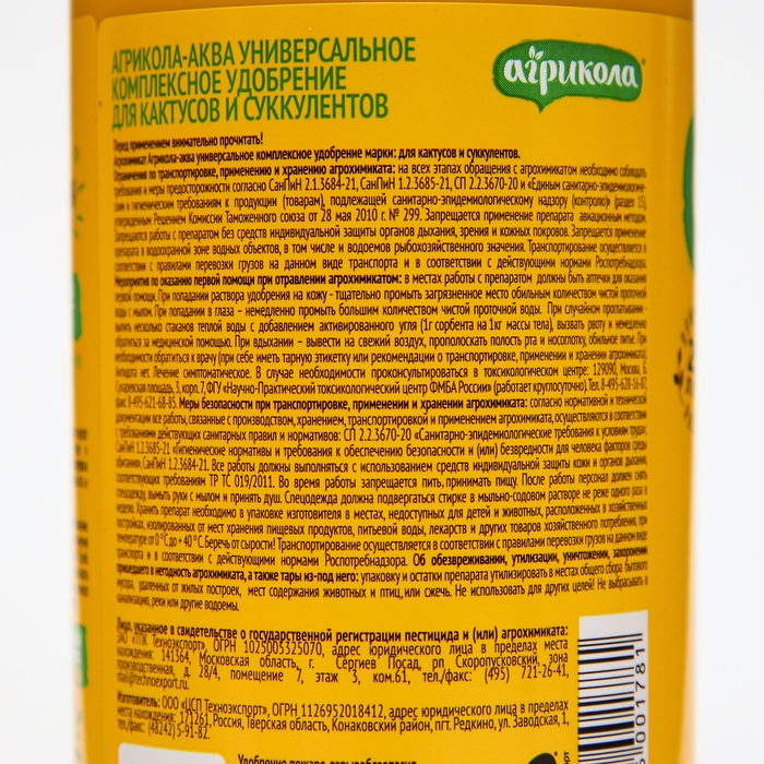 Удобрение "Агрикола", для кактусов, флакон, 250 мл