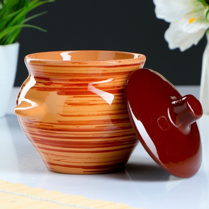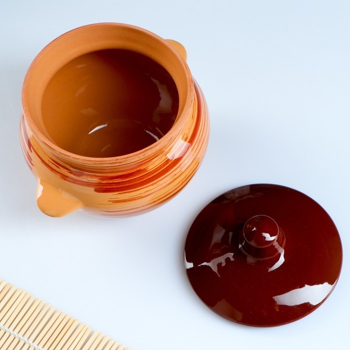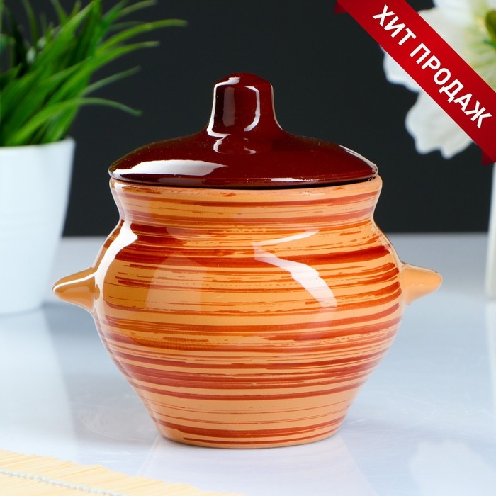 Горшок керамический для запекания №5 с ручками, 0,5л / 10х10,5см, оранжевая полоска