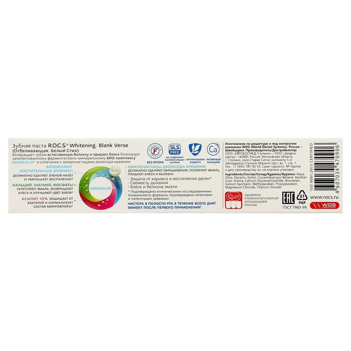 Дополнительно усиленная микрочастицами диоксида кремния формула этой зубной пасты, основанная на комплексе MINERALIN®, обладает выраженными полирующими и придающими блеск эмали зубов свойствами. Не содержит фтор, антисептики.