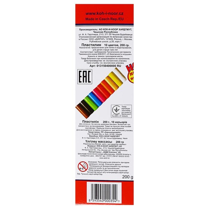 Пластилин 10 цветов, Koh-I-Noor Детский, 200 г