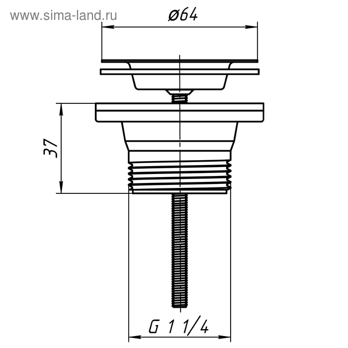 Донный клапан ZEIN BP1, 1 1/4", маленькая кнопка, с переливом, для раковины, хром