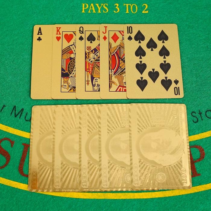 Выбирайте карты игральные пластиковые "100 долларов", 54 шт, 30 мкм, 8.5 x 4,5 см, в шкатулке и наслаждайтесь любимой игрой.