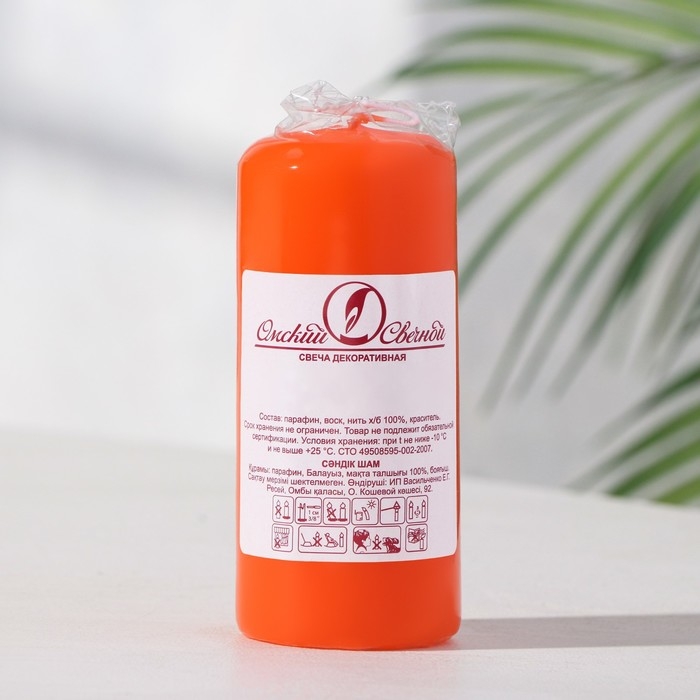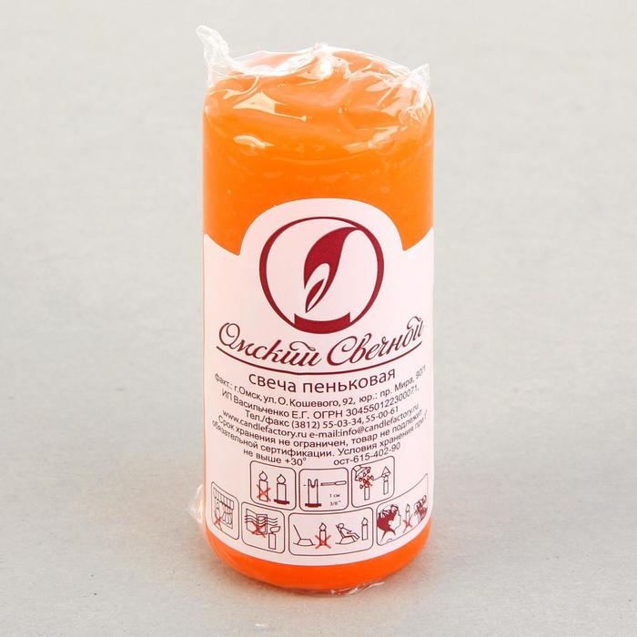 Свеча - цилиндр, 4х9 см, 11 ч, 90 г, оранжевая