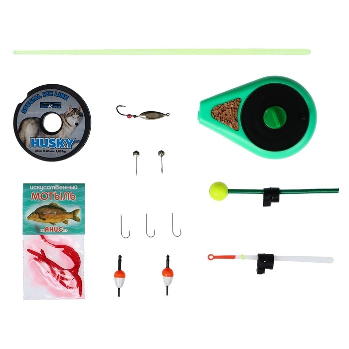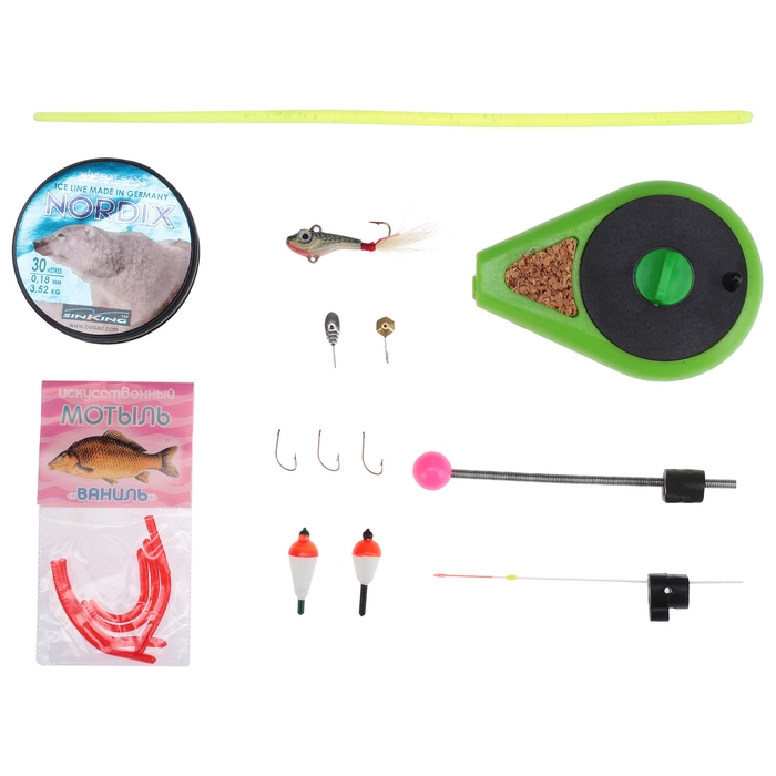 Набор рыболова подходит для новичков и отпускников. В него входит всё самое необходимое: от зимней удочки и лески до сторожка и мормышки. Блистерную упаковку удобно взять с собой, она не займёт много места.