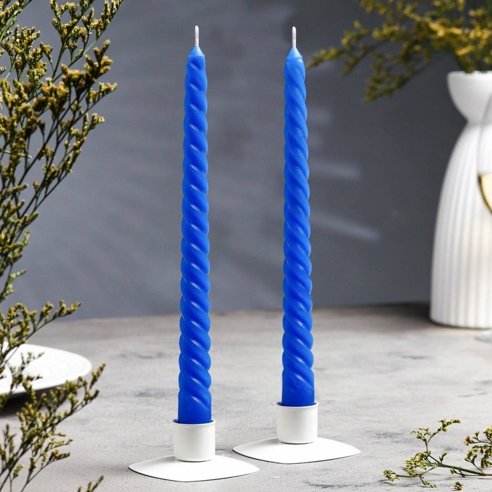 Набор свечей витых, 2,2х 25 см, лакированная 2 штуки, синий