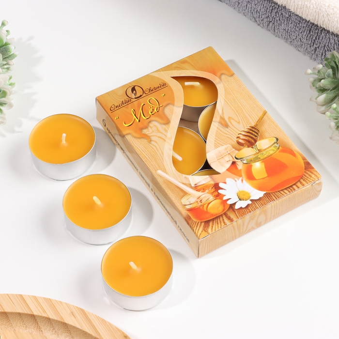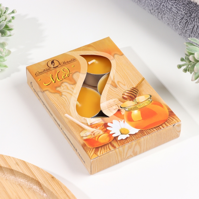 Набор чайных свечей ароматических "Мёд", 3,8х1,6 см, 3,5 ч, 12 г, 6 штук