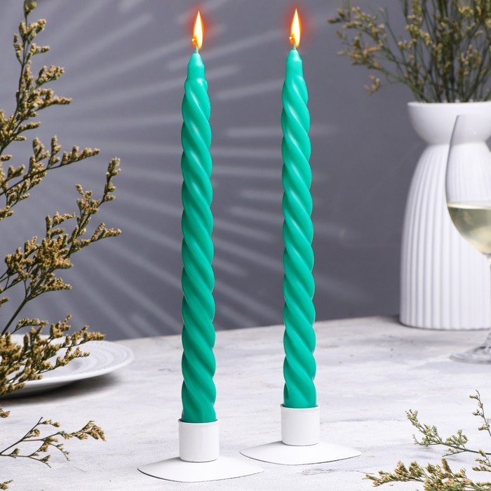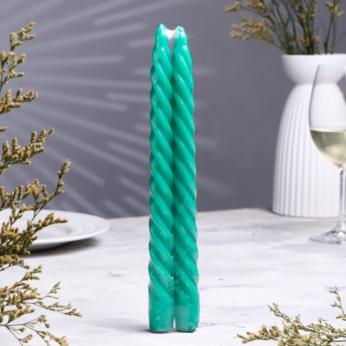 Набор свечей витых, 2,2х 25 см, лакированная 2 штуки, зелёный, подвес