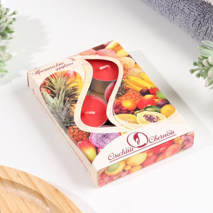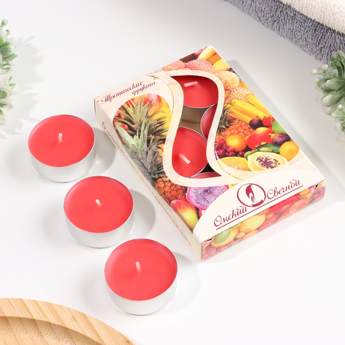 Набор чайных свечей ароматических "Тропические фрукты", 3,8х1,6 см, 3,5 ч, 12 г, 6 штук
