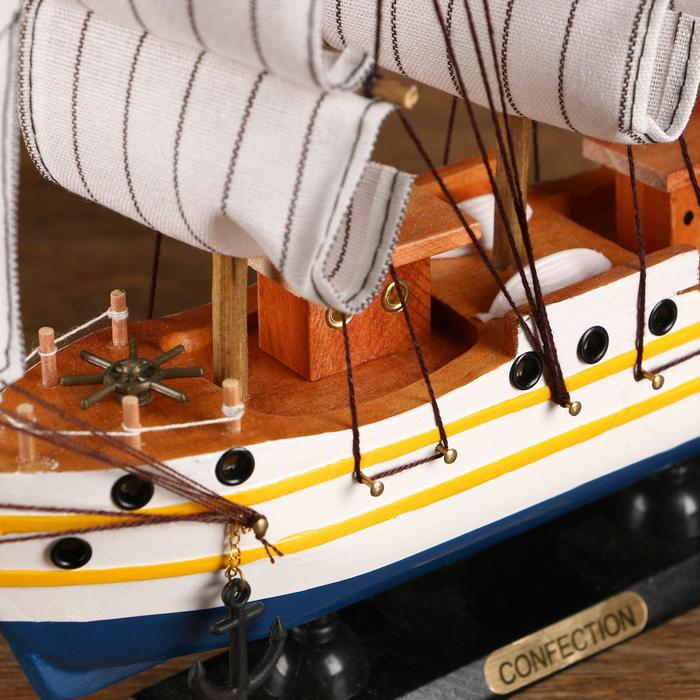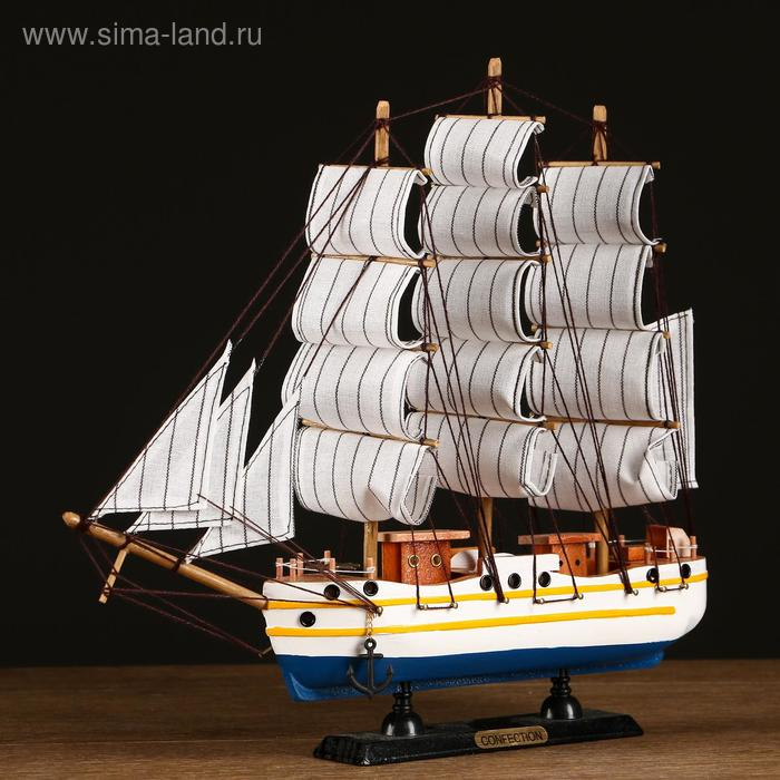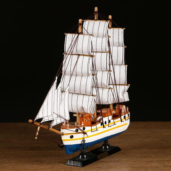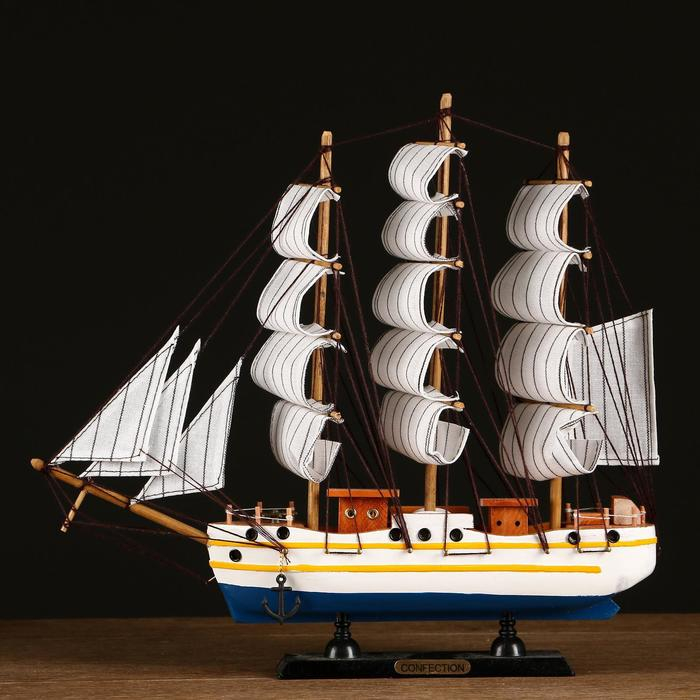 Корабль "Медуза" трехмачтовый с белыми парусами, белые борта с полосками, 33*7*32см
