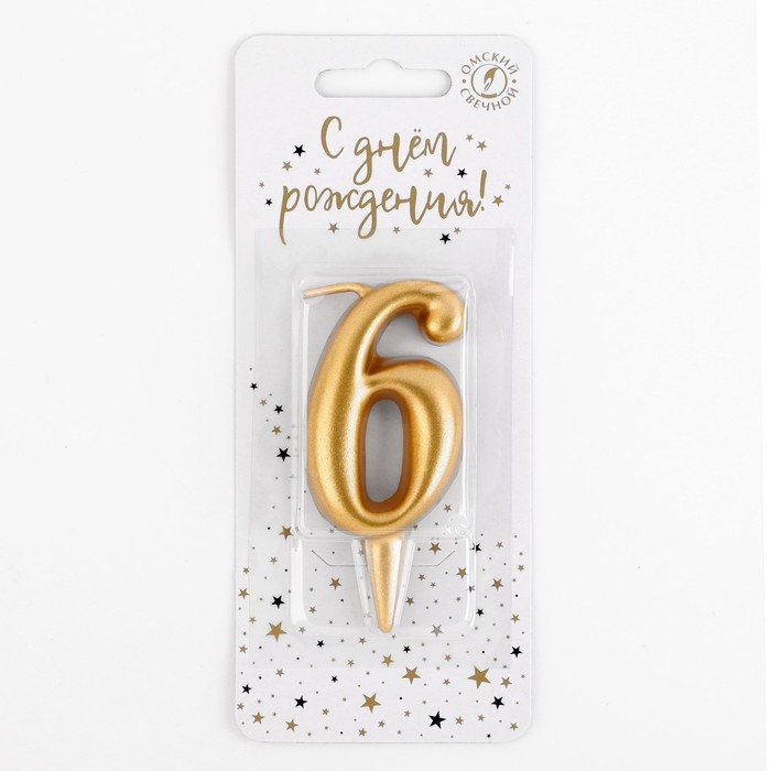 Свеча для торта цифра "Золотая", 5,5 см, цифра "6"
