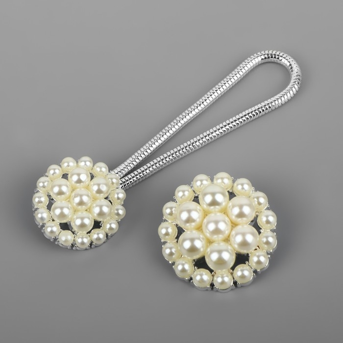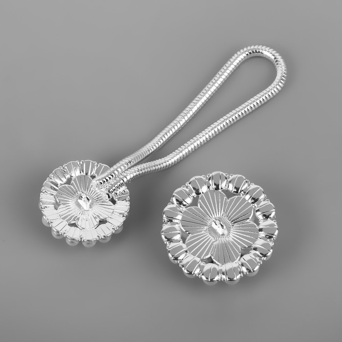 Декоративная застёжка, d = 2,5/3 см, цвет серебряный/белый