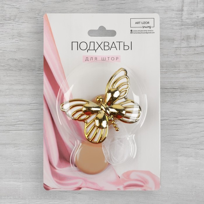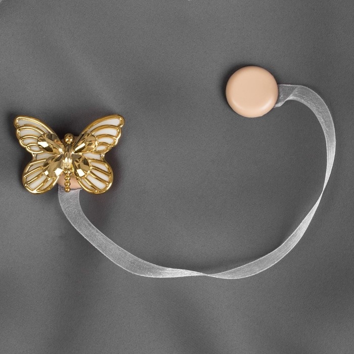 Подхват для штор «Бабочка», 6 × 4 см, 26 см, цвет золотой/белый
