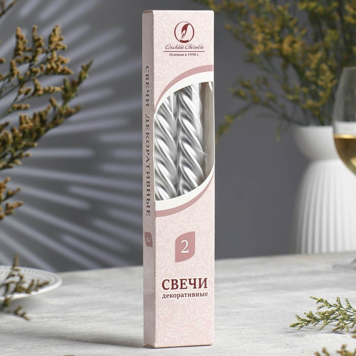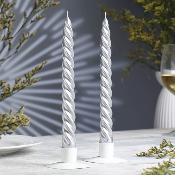 Набор свечей витых, 2,3х 24,5 см, 5 ч, 50 г, 2 штуки, серебряный