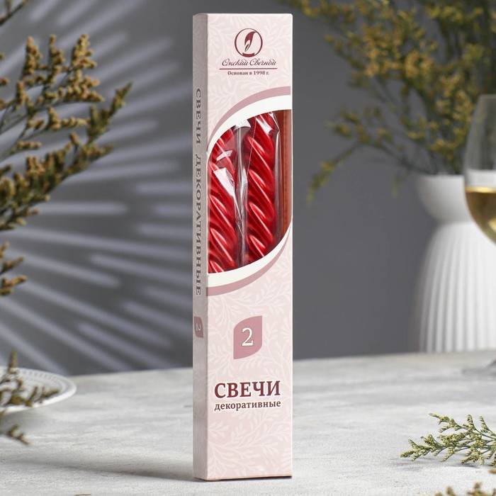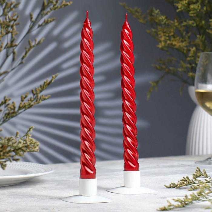Набор свечей витых, 2,3х 24,5 см, 5 ч, 50 г, 2 штуки, красный металлик