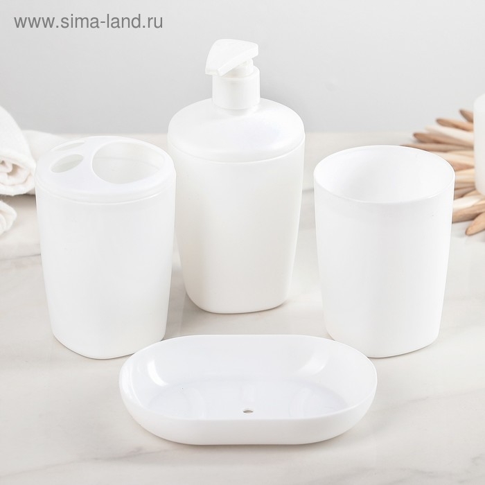 Набор аксессуаров для ванной комнаты Aqua, 4 предмета (дозатор, мыльница, 2 стакана), цвет белый