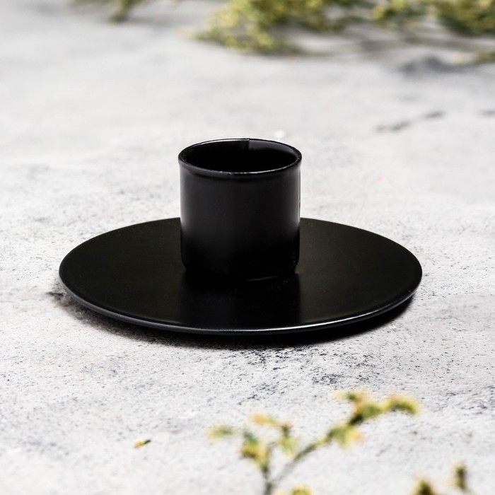 Подсвечник "Круг" металл на 1 свечу, 7х3 см, черный муар